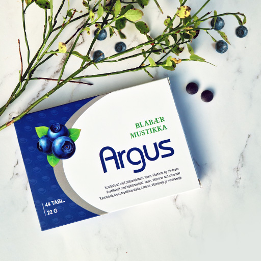 Argus on erityisesti silmien hyvinvointiin kehitetty valmiste. Se sisältää A-vitamiinia ja sinkkiä, jotka edistävät näön pysymistä normaalina. Arguksen ainesosiin kuuluu myös mustikkauute ja luteiini. Tiedätkö, miksi mustikat ovat niin terveellisiä? Ja mitä on luteiini?